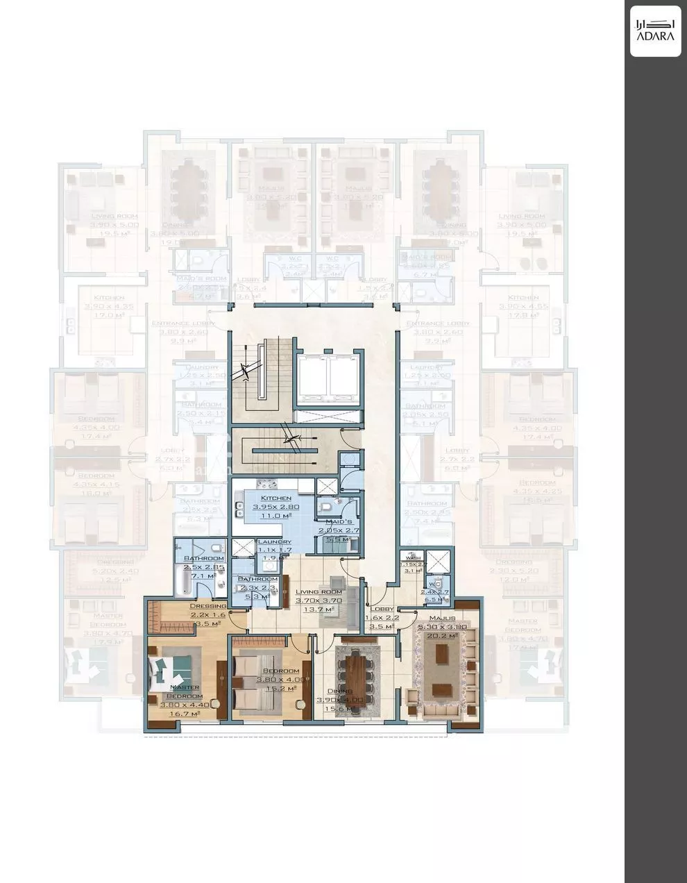 أكثر الأنواع توفراً: 3 غرف (38)، استوديو (16)، 2 غرف (13).