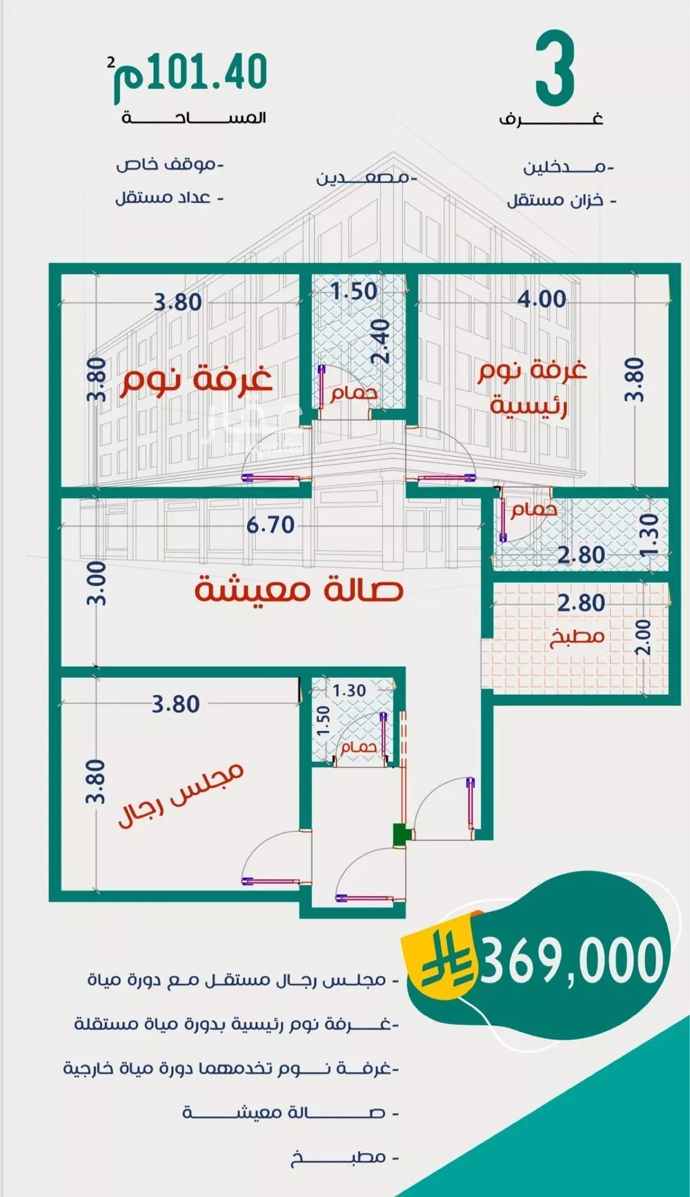 | ٣ غرف | 365,000 | 344,000–369,000 | 288 |