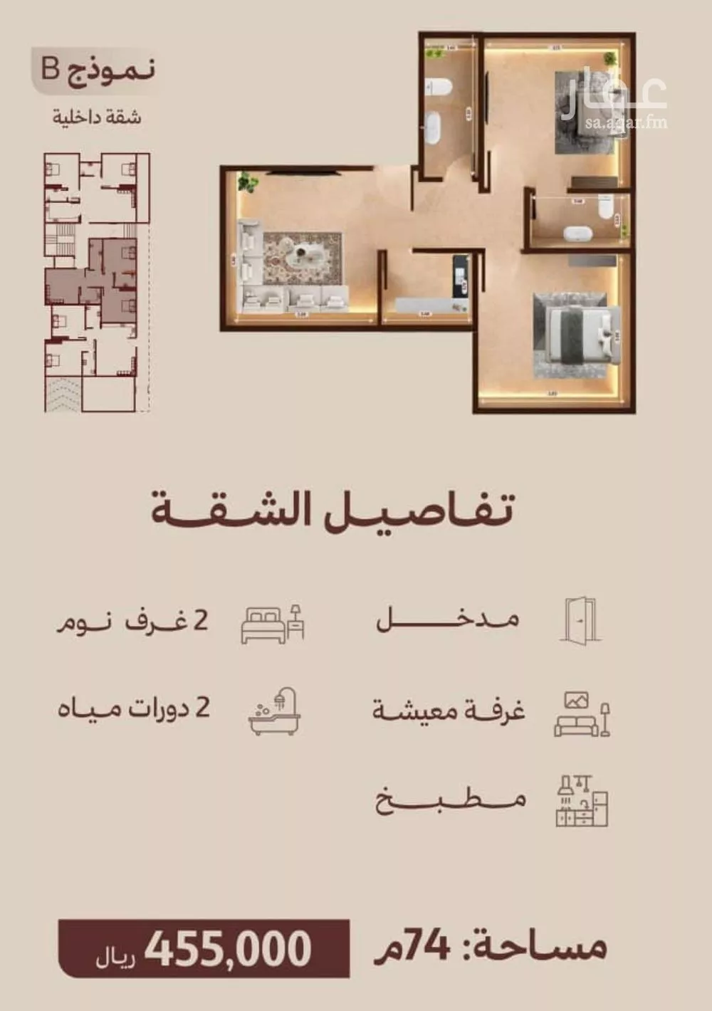 | ٢ غرف | 455,000 | 455,000–530,000 | 194 |