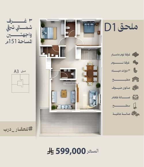 | ٣ غرف | 490,000 | 480,000–490,000 | 33 |