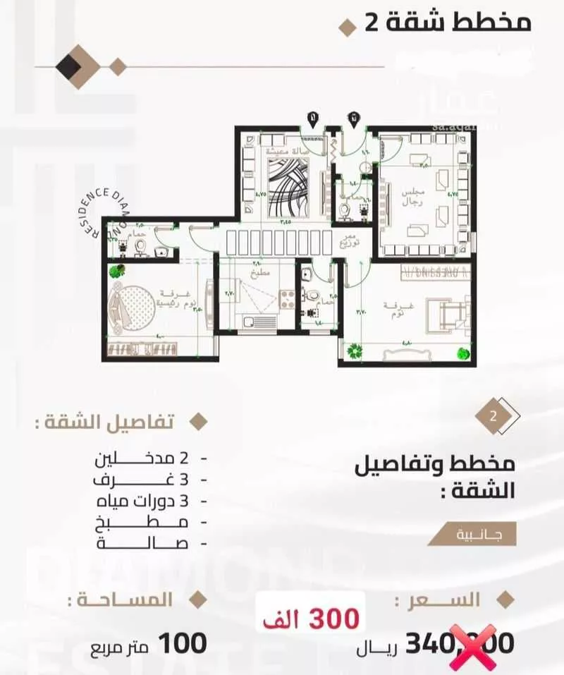 | ٢ غرف | 330,000 | 300,000–350,000 | 21 |