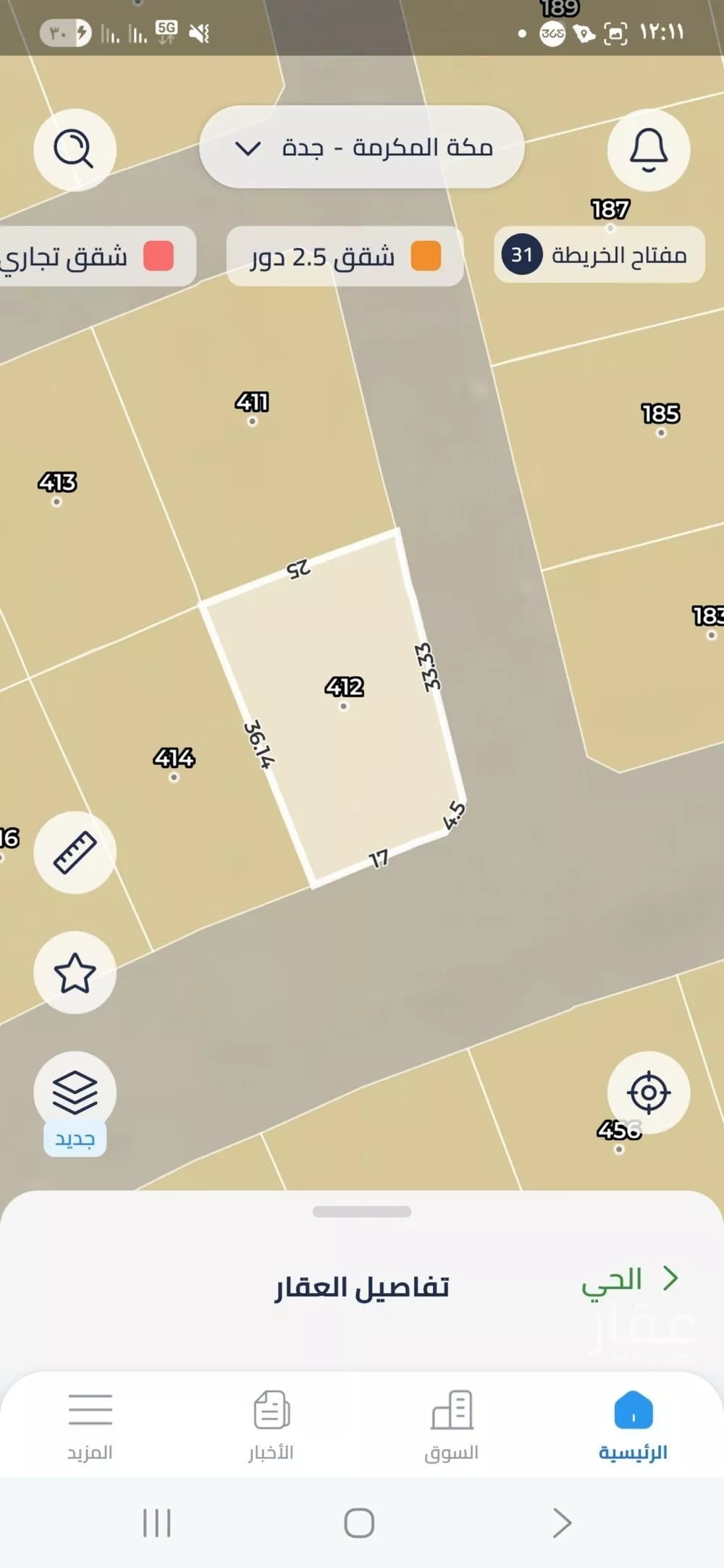 عرض على Aqarللبيــــــــــــع قطعه ارض في مخطط جوهره العروس حي النجمه ١ي رقم ٤١٢ مساحة ٨٠٦ م شارعين ٢٥جنوبي ١٦ شرقي مطلوب مليون و ١٥٠ الف مباشر من المالك