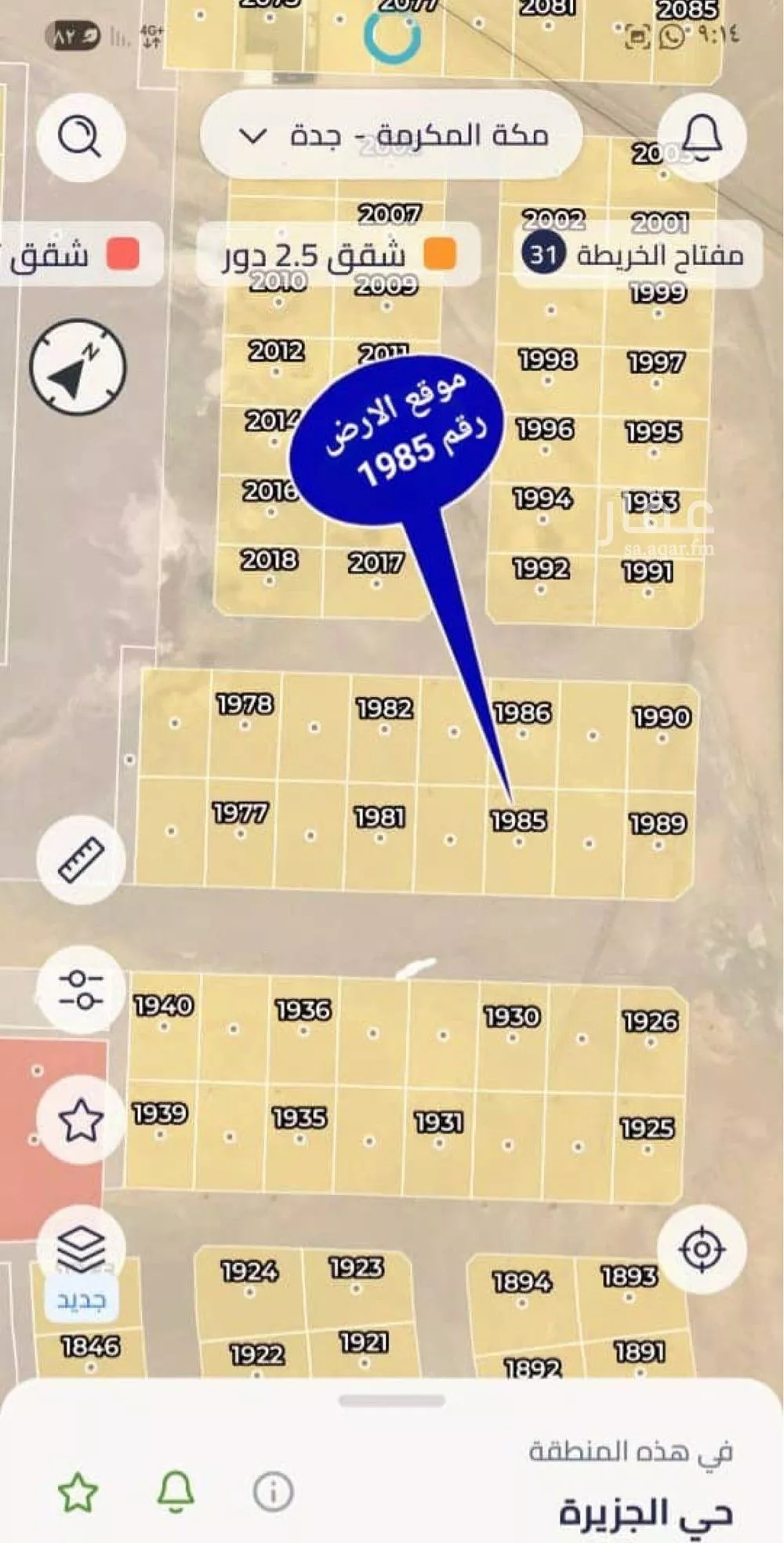 عرض على Aqarارض مميـــزه في شمال جـده جـوهرة العروس مخـطط 2ك رقــم الارض 1985 المسـاحة 620 متـــــر شــارع عــرض 25 متــــر مــدخلها من شــارع 52 الإقليمي تتميــز بي قربها من الخــدمات الارض نضيفه من جميع النطاقا...