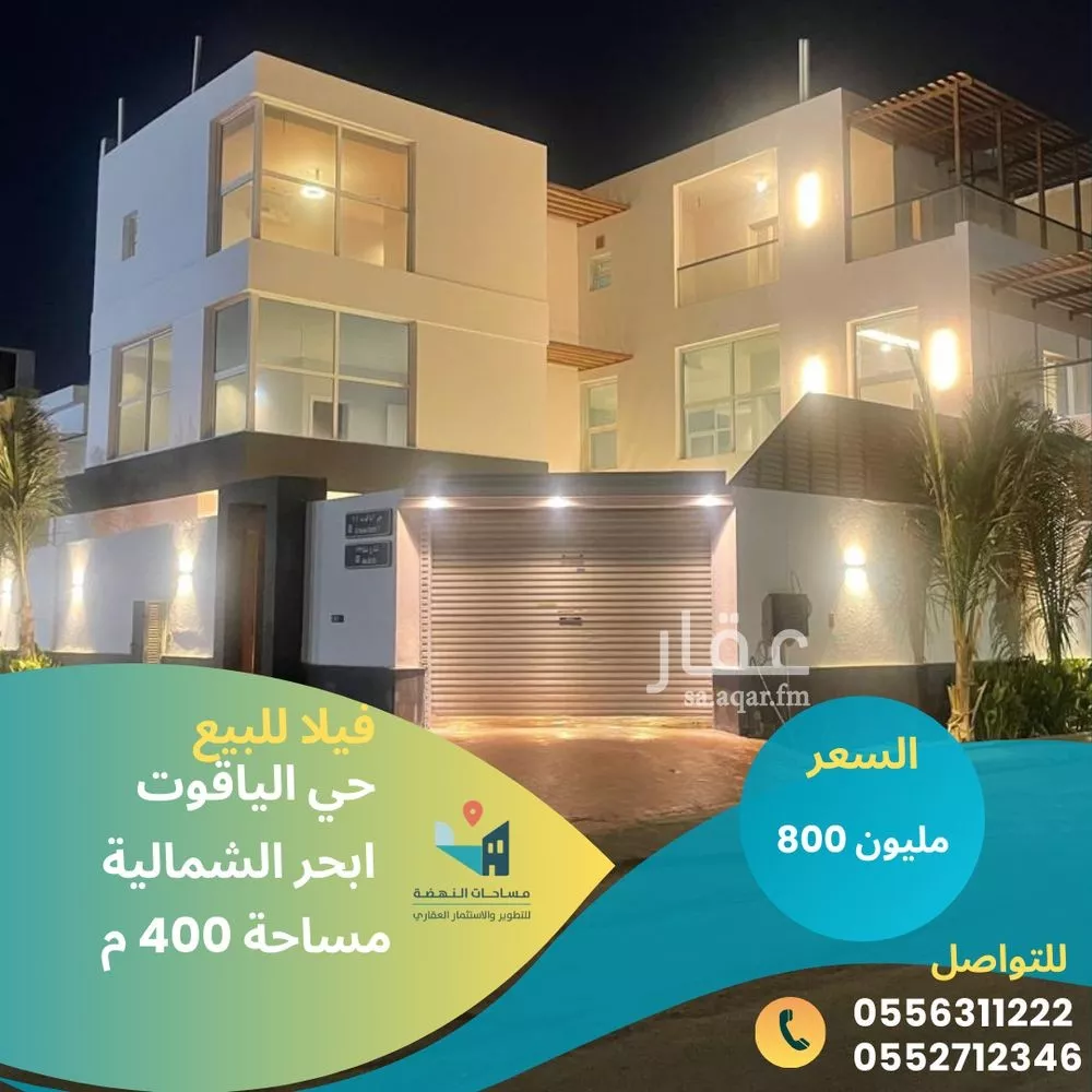 عرض على Aqarفيلا في حي الياقوت ، ابحر الشمالية . على شارعين .بجوار مسجد . البناء شخصي …. غير تجاري . مواصفات المنزل مساحة الارض ٤٠٠ م . المباني ٦١٤ م على شارعين عرض ١٦ م المسجد دقيقة مشي و امام باب المنزل ساحة فض...