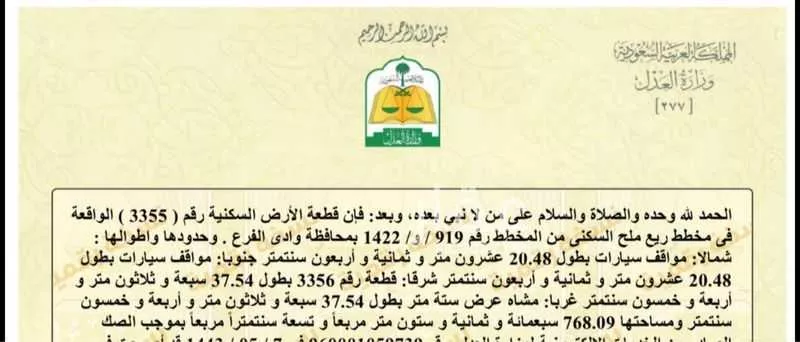 عرض على Aqarفرصة مميزة أرض للبيع مخطط ملح السكني بمحافظة وادي الفرع على 3 واجهات وبسعر لقطه وفرصه الموقع : مخطط ملح السكني بمحافظة وادي الفرع العقار : أرض سكنيه رقم المخطط : 919/و/1422 رقم القطعه : 3355 المساح...