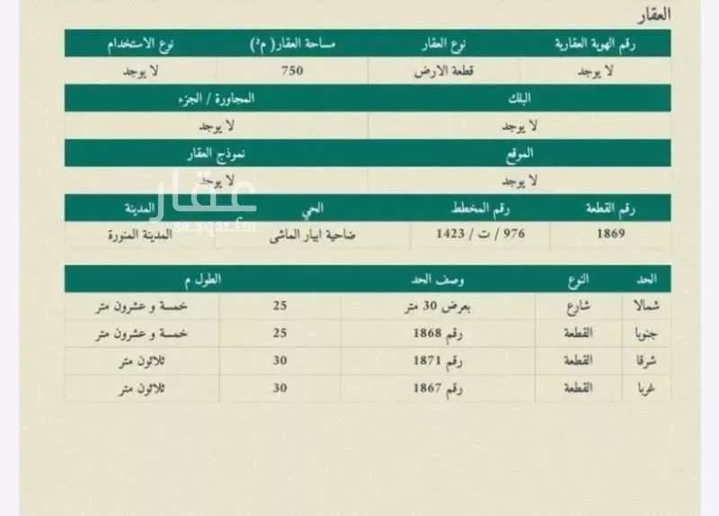 عرض على Aqarللبيع ارض تجارية في مخطط ابيار الماشي رقم القطعة 1869 المساحة 750 م شارع 30 شمالي الأرض مستوية تماما موقعها نظيف جدا ب 400 الف صافي