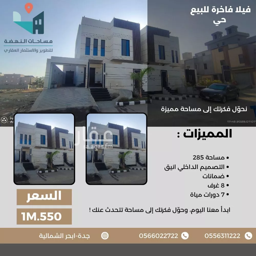 عرض على Aqarفيلا للبيع شمال جدة حي الزمرد وصف العقار : فيلا دورين و ملحق منفصل تفاصيل الوحدة : عدد الغرف : 8 عدد الحمامات : 7 عدد المطابخ : 1+ سيرفيس عدد الصالات : 3 غرف سائق : 1 مستوى التشطيب ممتاز المميزات الإض...