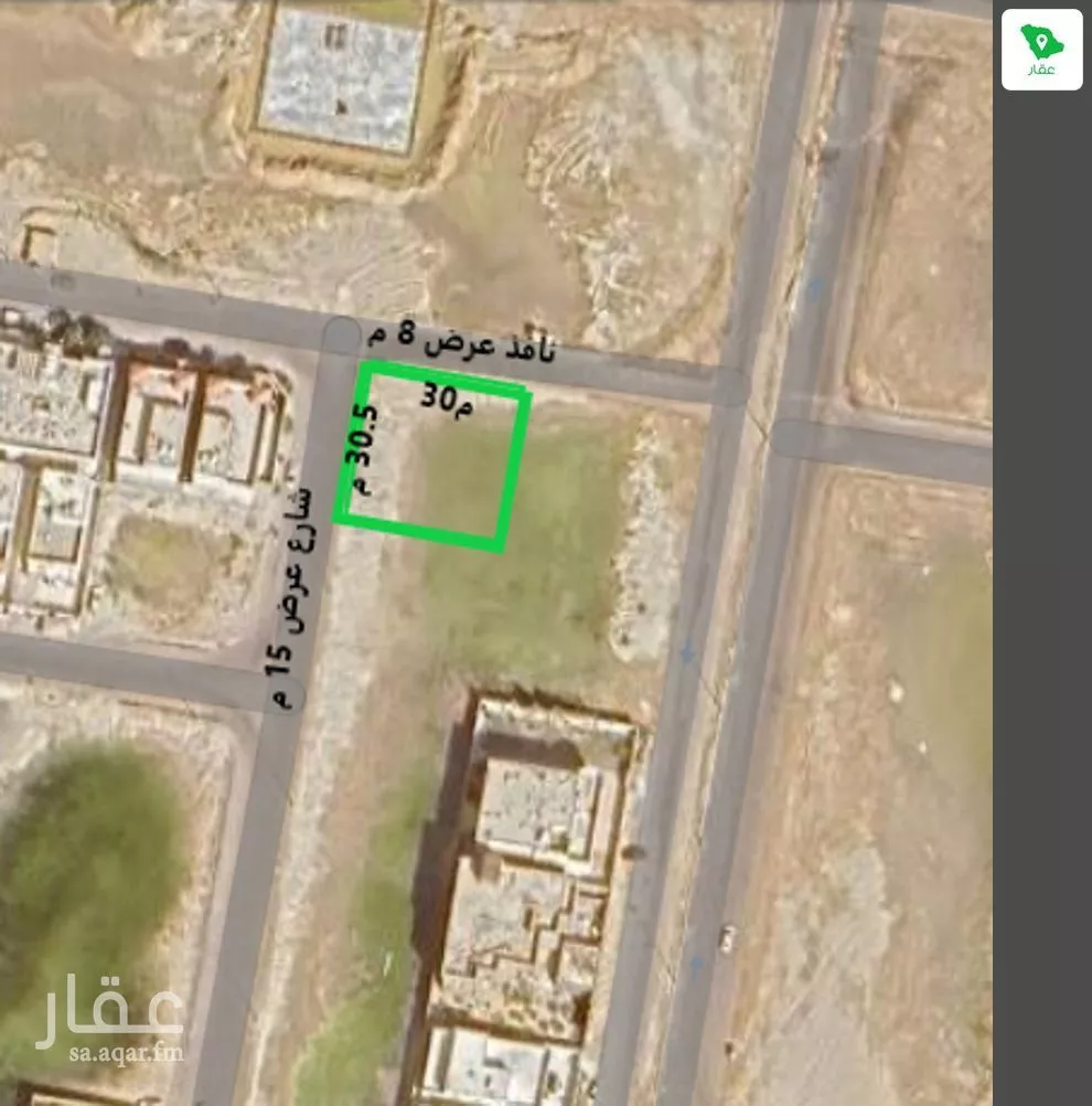عرض على Aqarأرض سكنية زاوية على شارعين شمالا : نافذ عرض 8م بطول 30 م جنوبا : قطعة بطول 30 م شرقا : قطعة بطول 30.5م غربا : شارع عرض 15 م بطول 30.5 م مساحتها 915 م
