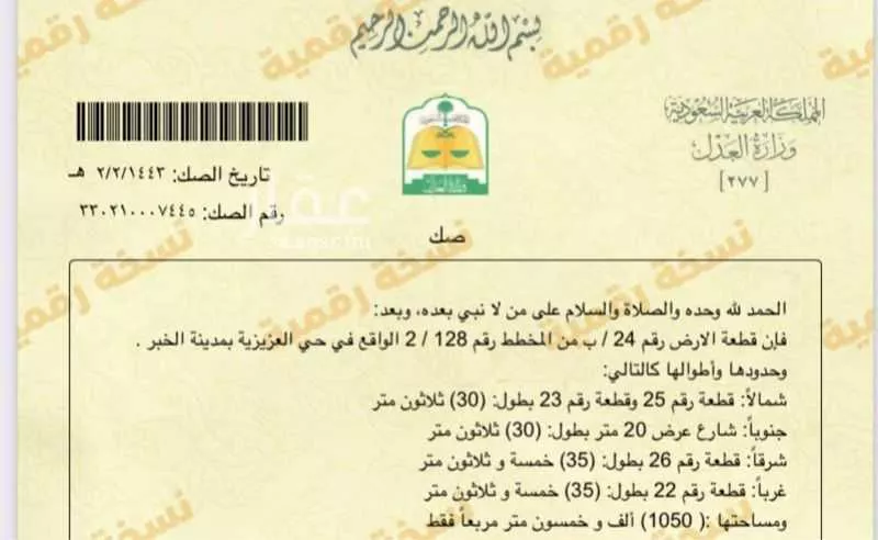 عرض على Aqarللبيع ارض سكنية في مدينة الخبر حي العزيزية المساحة 1050 رقم المخطط 128/2 قطعة رقم 24 الواجهه جنوبيه شارع 20 بطول 30 متر الاضلاع 35م * 30م قريب من طريق الخالدية و جامعة الامير محمد بن فهد قريبة من مشار...