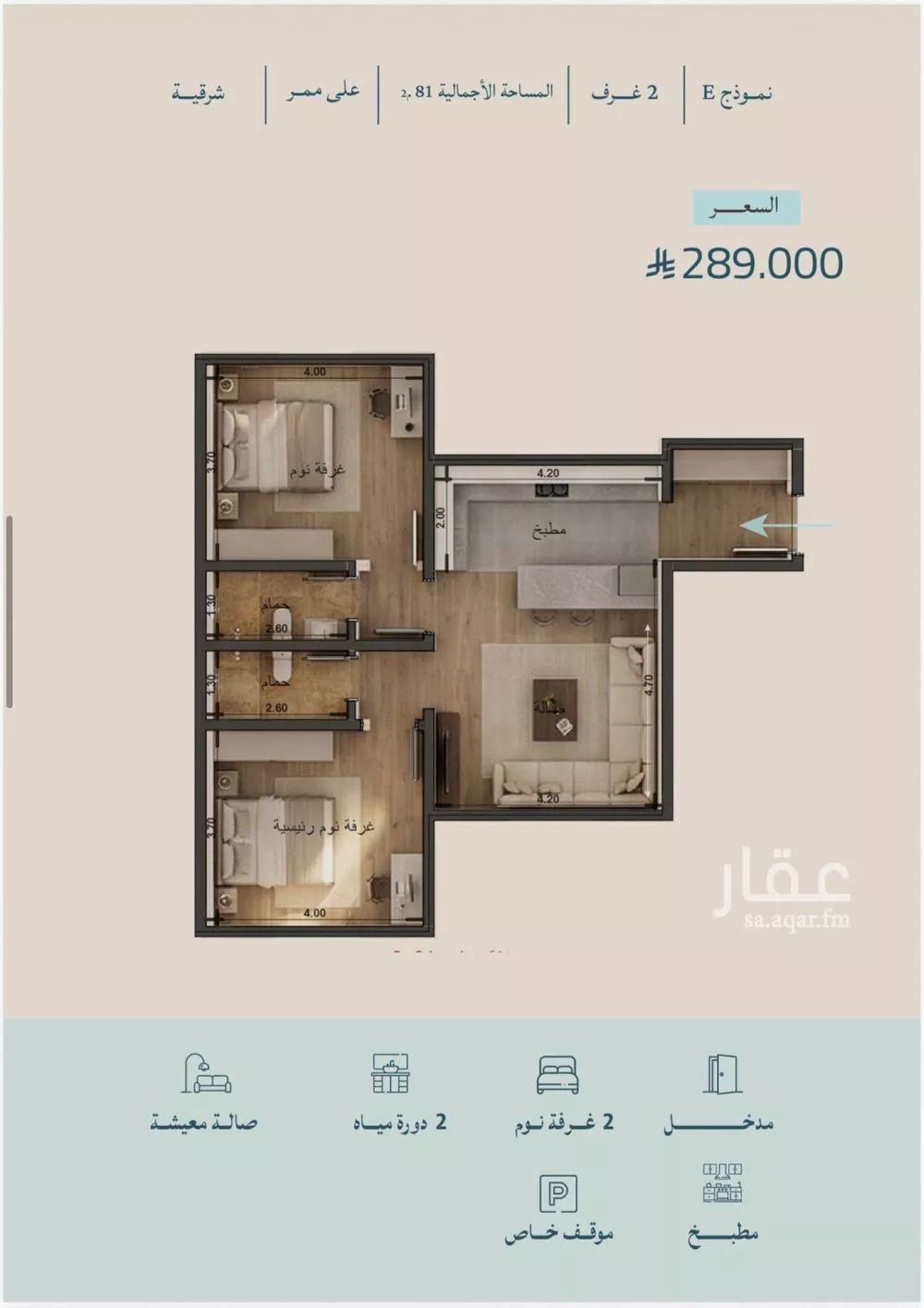 عرض على Aqarعملائنا المرام لمن اراد السكن او الاستثمار في حي الياقوت ، يعتبر المشروع نقلة نوعية في الموقع، التصميم، مجتمع سكني بمعايير حديثة. شقه غرفتين مدخل - صالة معيشه - مطبخ ٢ دورات المياه - مطبخ - موقف خاص خ...