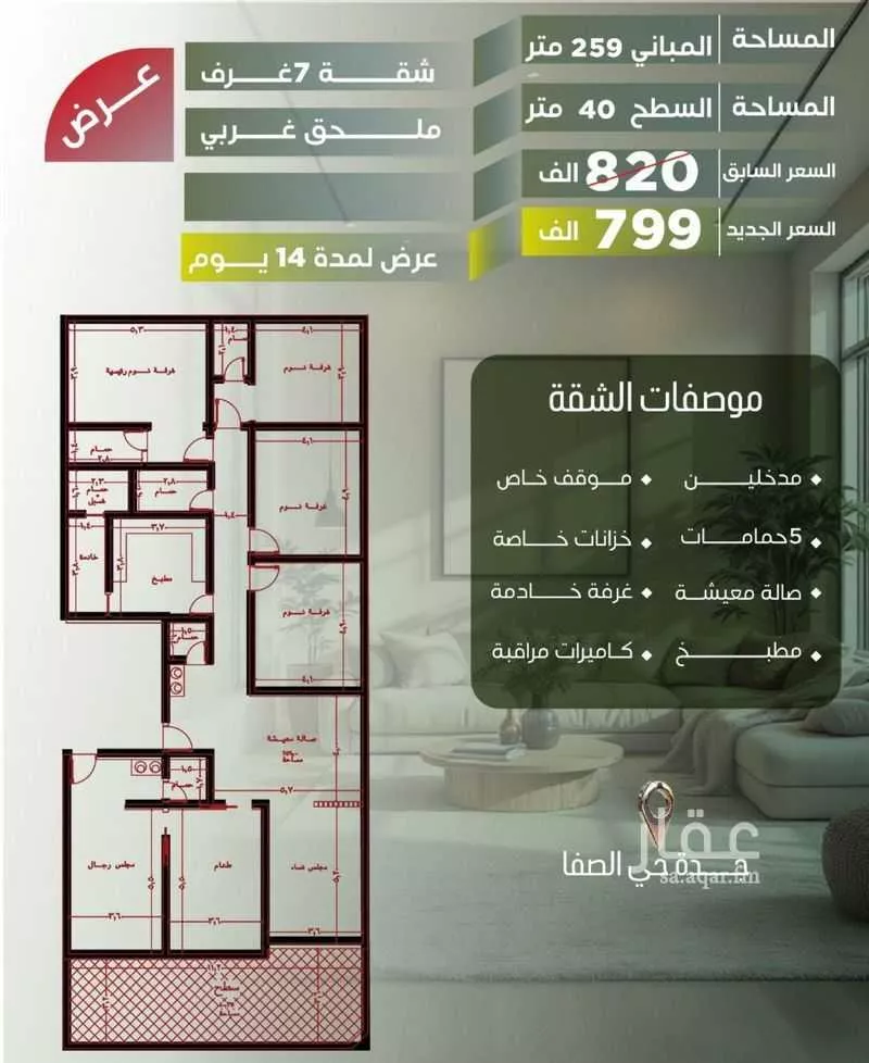 عرض على Aqarالسلام عليكم ورحمة الله وبركاته اسعد الله أوقاتكم بالخير والمسرات فرصة لعملائنا مميزةالدفع كاش يسرنا اطلاق مشروع “117” في حي الصفا النماذج المتاحة: ملحق فاخر (إجمالي المساحة 299م²) مباني 259م² سطح 40 ...