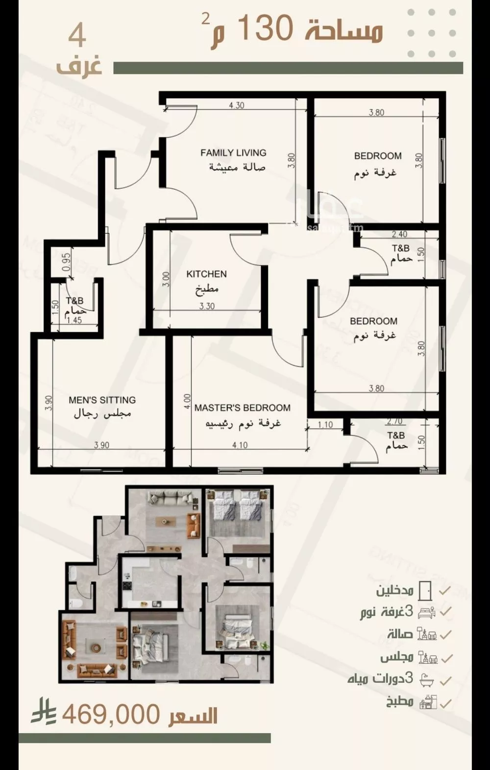 عرض على Aqarشقة بحي النزهة تتكون من: ٤ غ ف امامية مدخلين مطبخ صالة معيشة ٣ دورات مياه موقف خاص خزانات مستقله علوي وسفلي المساحة 130م السعر 469000 الدفع كاش /////////////////// * مزايا الموقع •ظهيرة طريق الملك فهد...