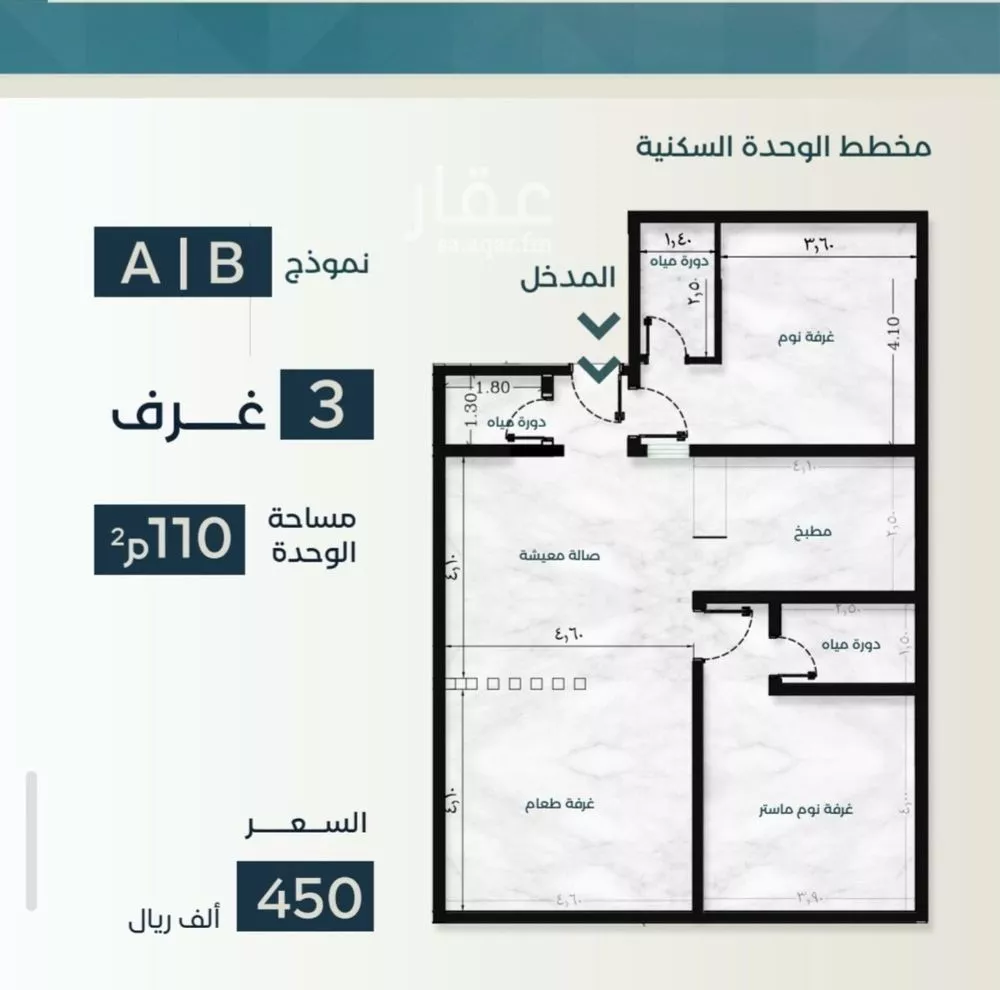 عرض على Aqarالسلام عليكم ورحمة الله وبركاته شركاء النجاح نضع بين أيديكم مشاريعنا النموذجيه بحي السلامه بمواقع مميزه وأسعار تلبي احتياجك كساكن ومستثمر ___ __ ٣غرف أماميه مساحه ١١٠م بسعر ٤٥٠الف ____ للحجز والاستفسا...