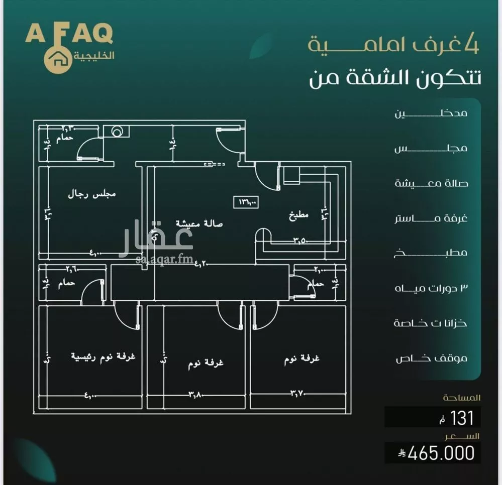 عرض على Aqarاربع غرف كاش فقط حي النزهه مدخلين وصاله ومطبخ وثلاثه دورات مياه بسعر 460,000 الف فقط *مميزات الــمشروع* *تشطيبات فاخره وعصريه *مساحات جدآ مختلفه تناسب احتياجات المستثمر والساكن *دخول ذكي (سمارت هوم) *...