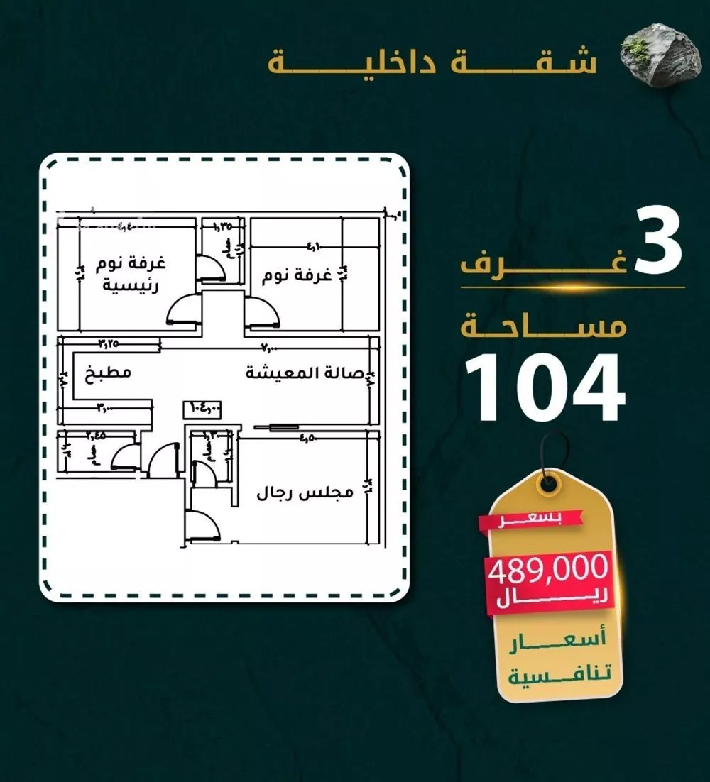 عرض على Aqarشقة بحي الروضه تتكون من؛ ٣ غرف خلفيه مدخلين صالة معيشة - مطبخ 3 دورات مياه - موقف خاص خزانات مستقله علوي وسفلي المساحة 104م السعر 489000 الدفع كاش ////////////////// تصميم عصري ومودرن دخول ذكي توزيع م...