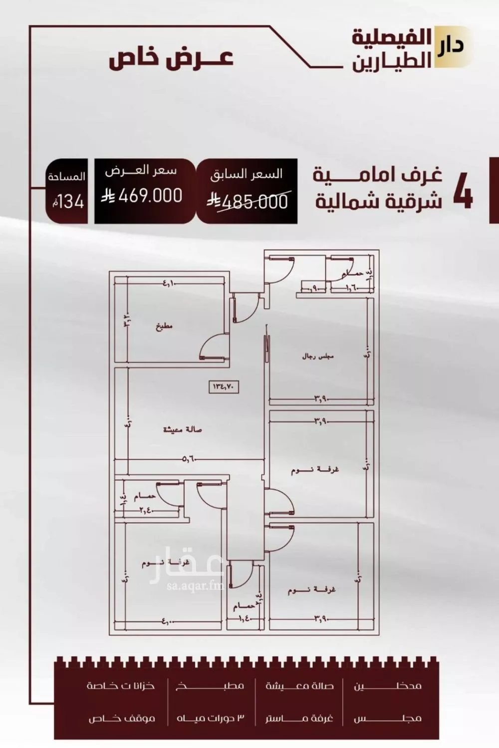 4 غرف شقة في الفيصلية، جدة معروضة بسعر ٤٨٥٬٠٠٠ ريال، أقل بنسبة 8% من متوسط سعر الحي البالغ ٥٣٠٬٠٠٠ ريال. بناءً على 248 عقار مشابه.