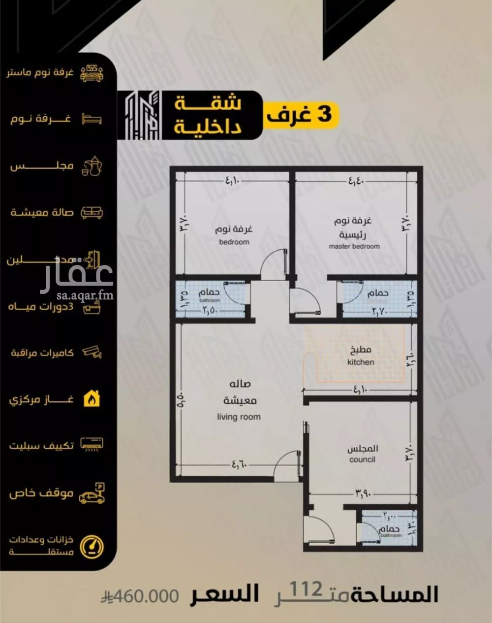عرض على Aqarشقق فاخره للتمليك والاستثمار حي السلامة، جدة (قيد الإنشاء) 3 غرف المساحة 112 م السعر 460,000 ريال الفرصة بين يديك الآن: الأسعار أقل من سعر الجاهز بـ 25% إلى 30%، إن كان للسكن فقد وفرت الكثير، وإن كان ...
