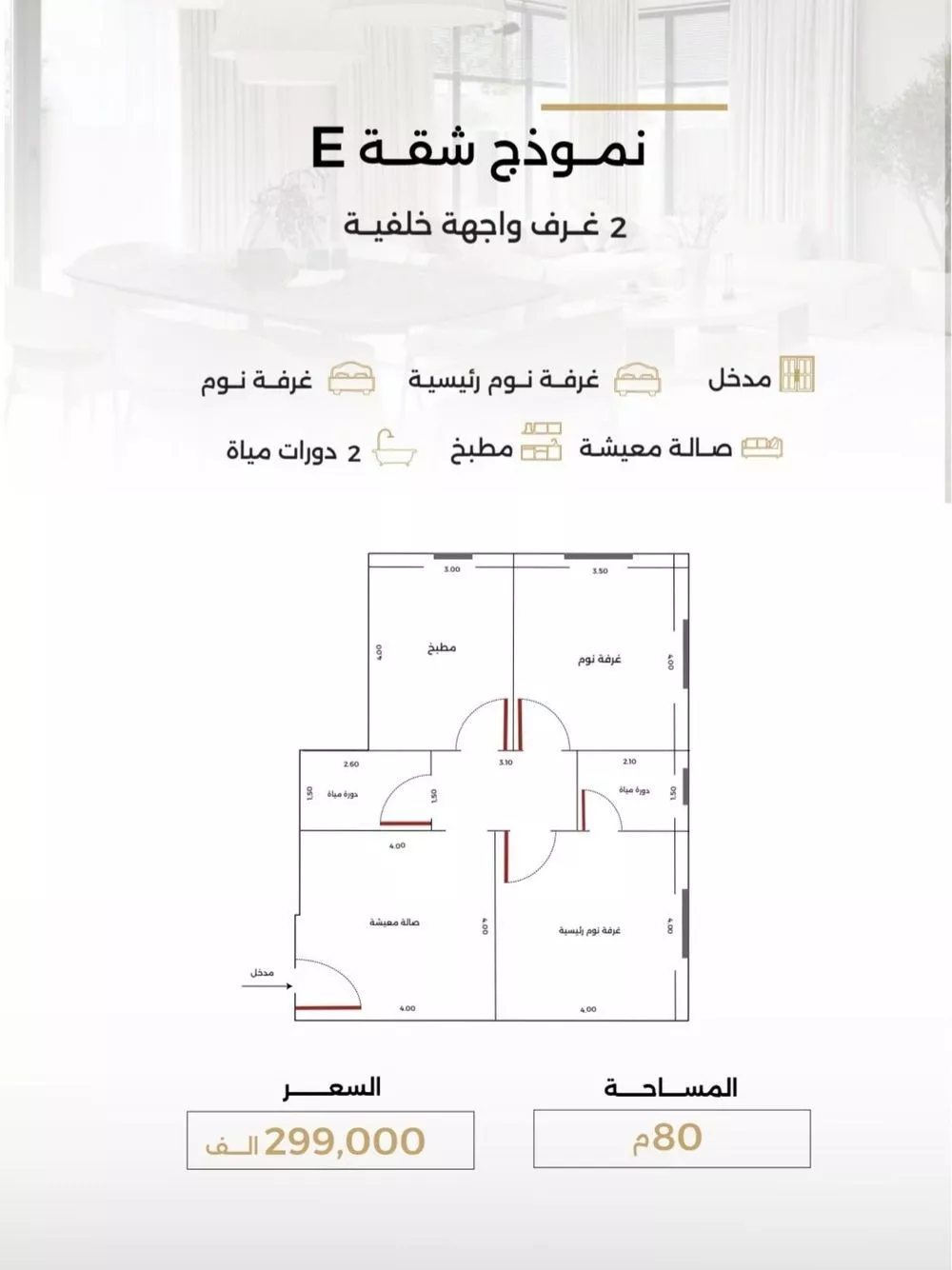 عرض على Aqarشقة غرفتين خلفية المساحة 80م السعر 299,000