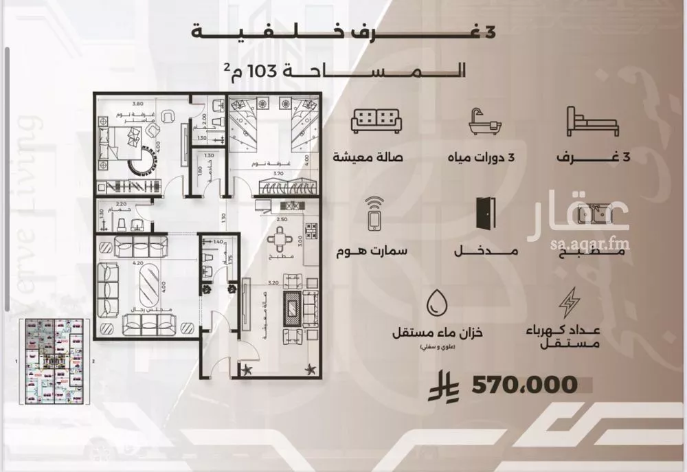عرض على Aqarفـيرف ليـفيـنج النهضة عنوان السكن الراقي في قلب جدة الموقع: (حي النـهـضـة ) – على شارع غزوة بدر – مدة التنفيذ 12 شهر فقط والدفع كاش ⸻ شقه 3 غرف مساحه 103م السعر 570 الف كاش تشطيبات فاخرة – أسقف مرتفعة...