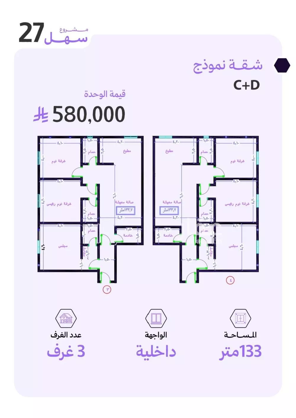 عرض على Aqarحي الزهراء المشروع على الخارطه *اسعار تبدأ من 580 الف* *مساحات تصل الى 265م* 3 غرف مساحة 133 *مقابل حديقة وجامع الزهراء* *نافذ على شارع عبدالله الجاسر* *دقيقتان الى مول اليو ووك وسوق الشاطئ* *مدة التس...