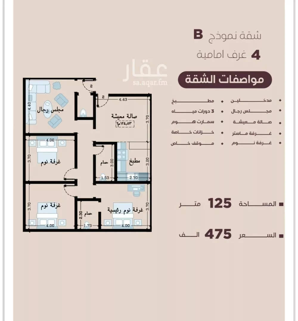 عرض على Aqar| حي المنار مميزات المشروع تشطيب عصري موقع استراتيجي قريب من الخدمات: • الياسمين مول: 2 دقيقة • الحديقة: 3 دقائق • المسجد: 3 دقائق • أسواق المزرعة: امام المشروع مباشر • الصالة الاقتصادية: 3 دقائق • أس...
