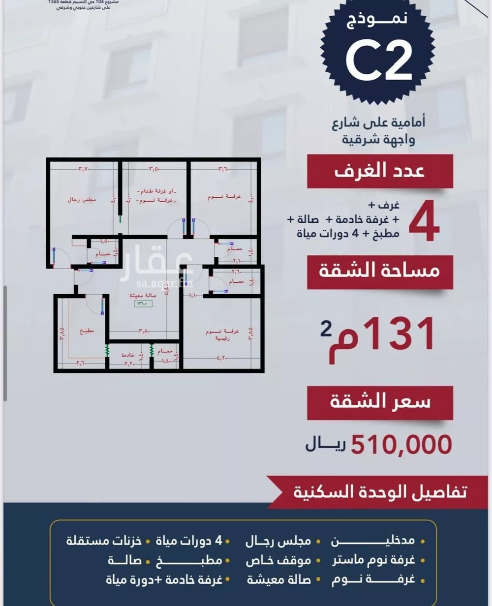 4 غرف شقة في النسيم، جدة معروضة بسعر ٥١٠٬٠٠٠ ريال، أعلى بنسبة 6% من متوسط سعر الحي البالغ ٤٨٠٬٠٠٠ ريال. بناءً على 122 عقار مشابه.