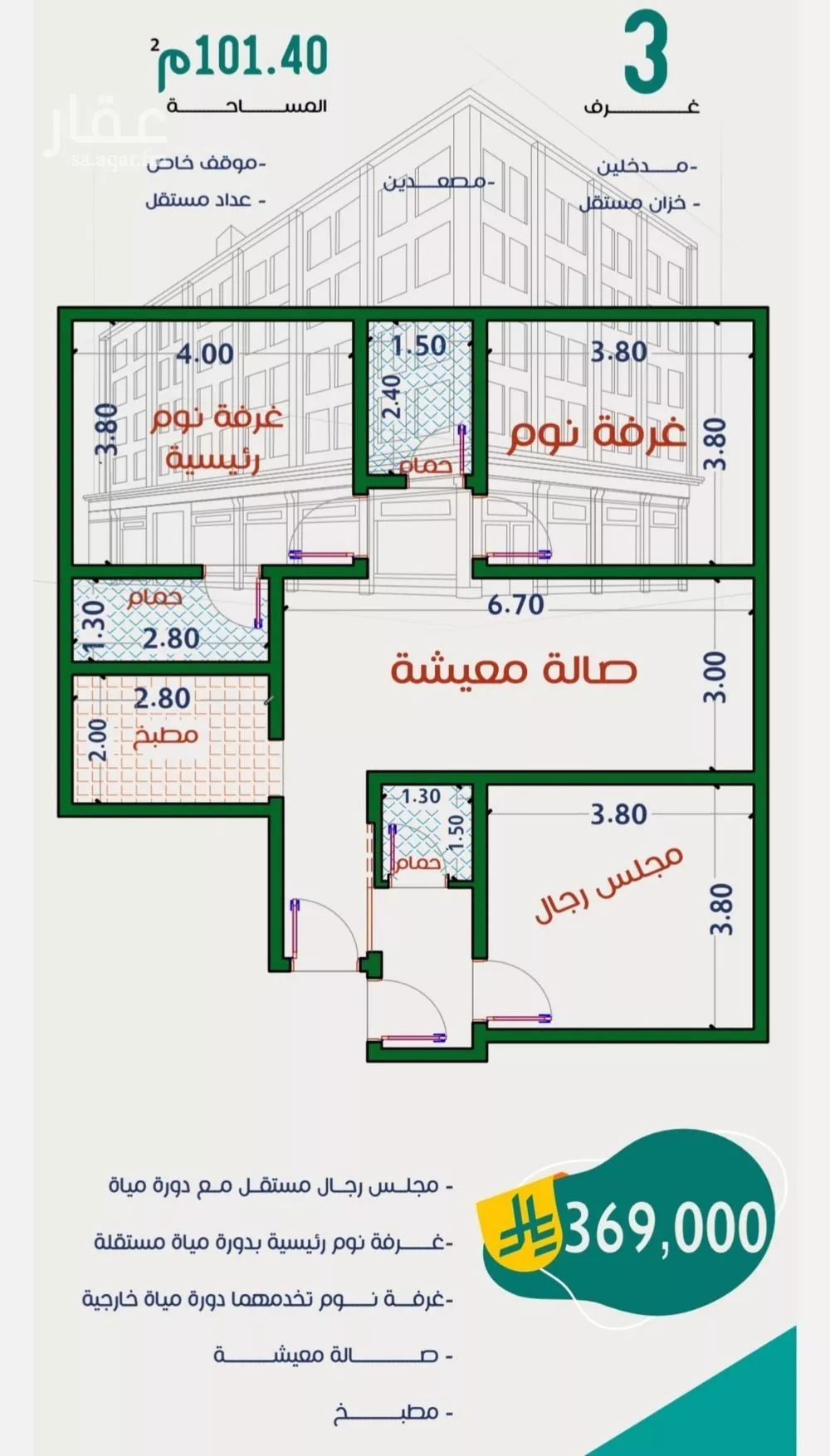 عرض على Aqarشقة 3 غرف المساحه 101 السعر 369الف