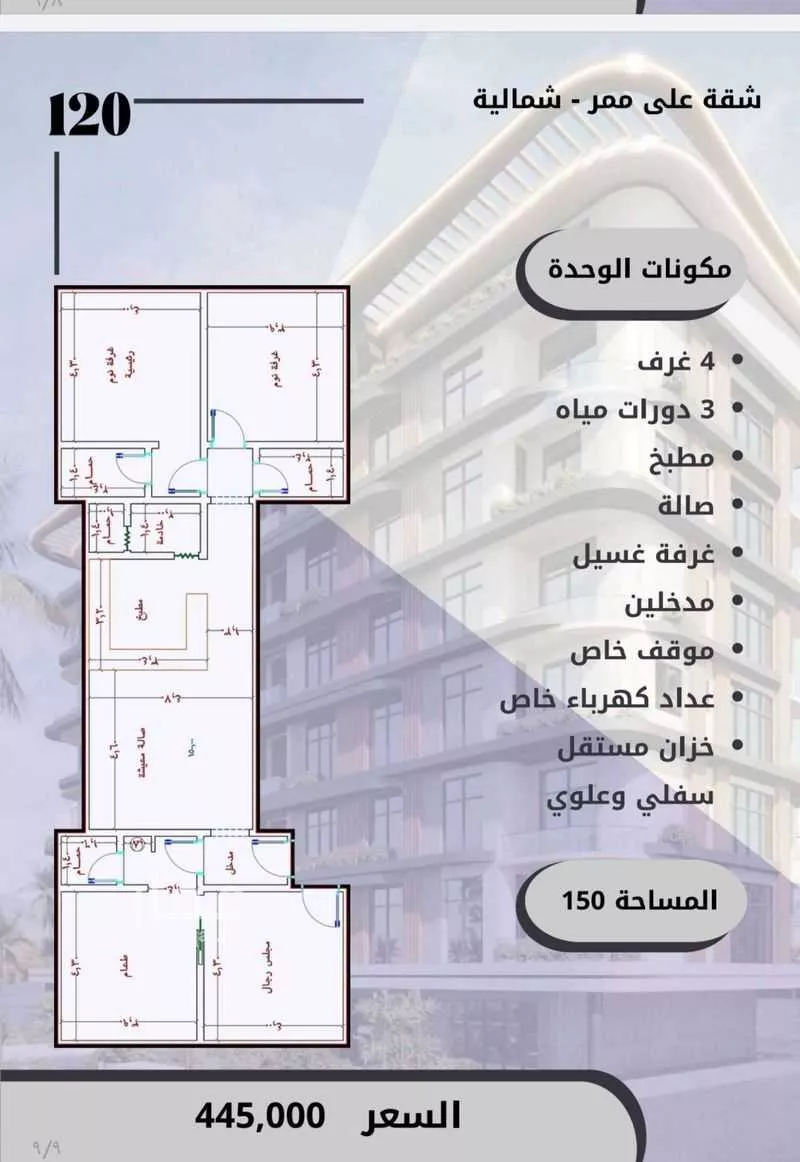 4 غرف شقة في الواحة، جدة معروضة بسعر ٤٤٥٬٠٠٠ ريال، أقل بنسبة 1% من متوسط سعر الحي البالغ ٤٤٩٬٠٠٠ ريال. بناءً على 288 عقار مشابه.