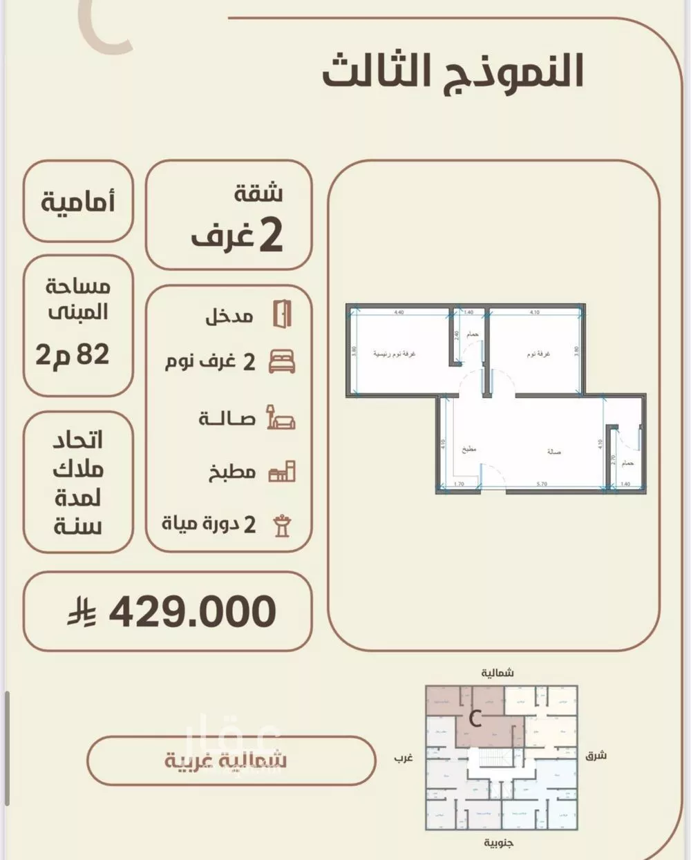 2 غرف شقة في الروضة، جدة معروضة بسعر ٤٢٩٬٠٠٠ ريال، أقل بنسبة 7% من متوسط سعر الحي البالغ ٤٥٩٬٠٠٠ ريال. بناءً على 253 عقار مشابه.