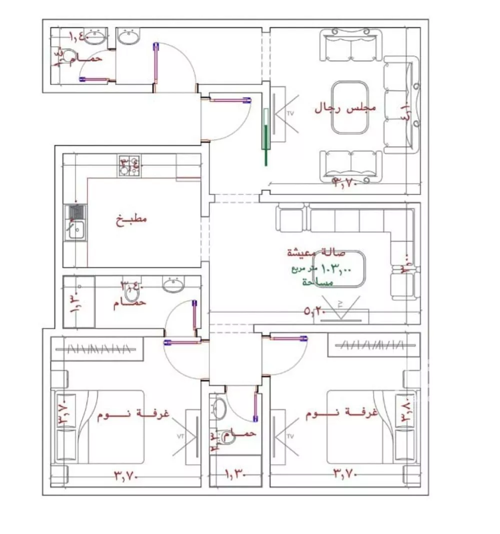 عرض على Aqarالشقة مساحتها 108 م² وسعرها 355 ألف وتقع في حي الربوة، وهي شقة مناسبة لعائلة لأنها تحتوي على مجلس وصالة وغرفتين نوم و3 حمامات. التوزيع العام للشقة المخطط مقسوم بشكل واضح إلى ثلاث مناطق: 1 منطقة الضيوف...