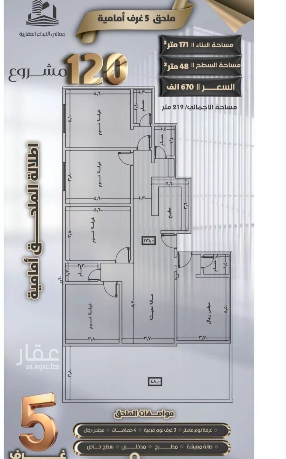 عرض على Aqar* فرصة لعملائنا مميزة يسرنا اطلاق مشروع 120” في حي الصفا النماذج المتاحة: غرفتين اماميه شقة واجهة أمامية85متر ) السعر 309ألف تفاصيل الوحدة: غرفتين – مدخل غرفة نوم رئيسية غرفة نوم بدورة مياه مشتركة صال...