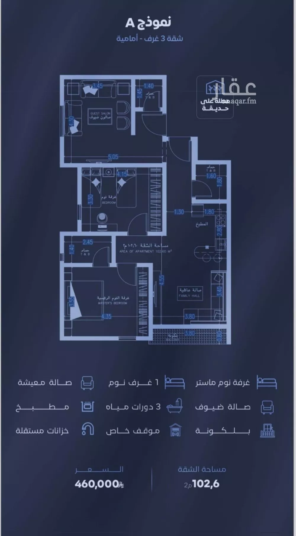 3 غرف شقة في الفيصلية، جدة معروضة بسعر ٤٦٠٬٠٠٠ ريال، أعلى بنسبة 19% من متوسط سعر الحي البالغ ٣٨٧٬٠٠٠ ريال. بناءً على 413 عقار مشابه.