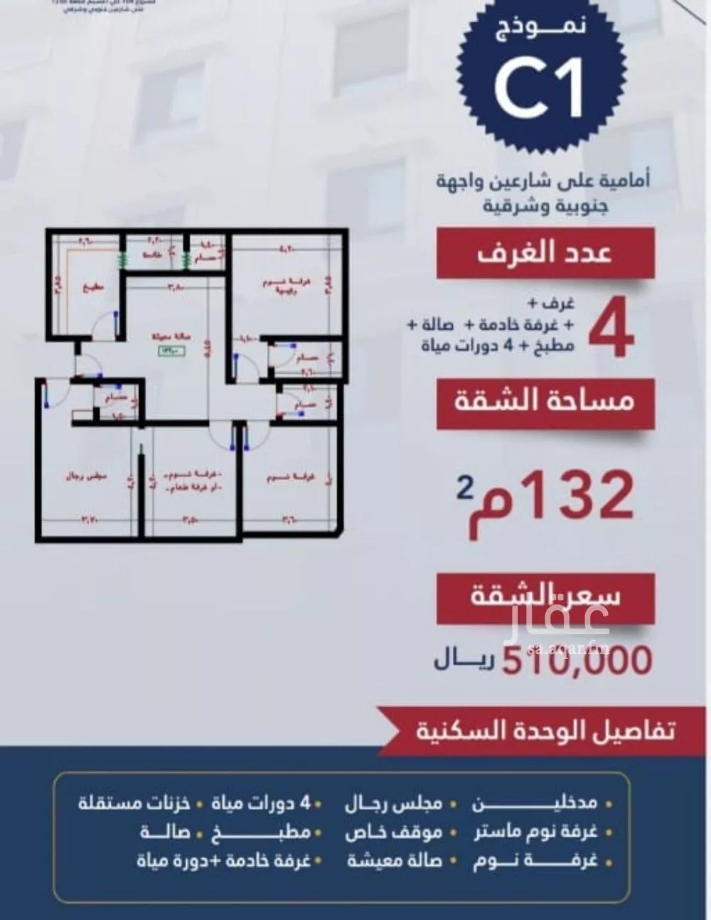 عرض على Aqarشقق للبيع للسكن والاستثمار في ارقى احياء جده حي النسيم موقع مميز قريب من جميع الخدمات 4 غرف مساحة 132م بسعر 510 الف 3 دورات مياه صاله مطبخ موقف خاص خزانات مستقله