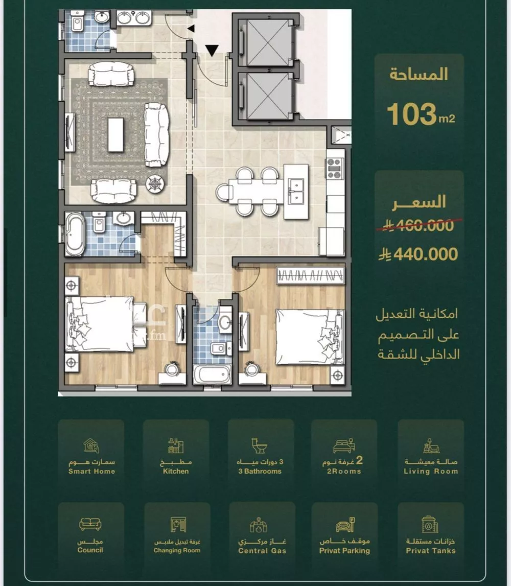 3 غرف شقة في السلامة، جدة معروضة بسعر ٤٤٠٬٠٠٠ ريال، أقل بنسبة 8% من متوسط سعر الحي البالغ ٤٧٩٬٠٠٠ ريال. بناءً على 801 عقار مشابه.