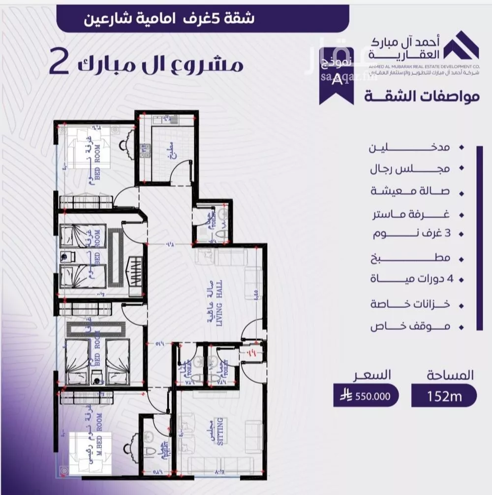 5 غرف شقة في المروة، جدة معروضة بسعر ٥٥٠٬٠٠٠ ريال، أقل بنسبة 15% من متوسط سعر الحي البالغ ٦٥٠٬٠٠٠ ريال. بناءً على 162 عقار مشابه.