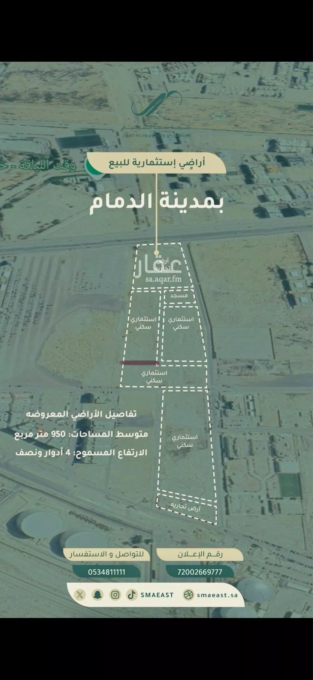عرض على Aqarللبيع اراضي استثماريه بموقع مميز بالدمام بالقرب من قصر الخليج وارامكو والخطوط الرئيسه مثل طريق محمد بن فهد وطريق الرياض وطريق بقيق المخطط متوفر جميع الخدمات الكهرب الماء الاسلفت الاناره ** الصكوك مفرو...