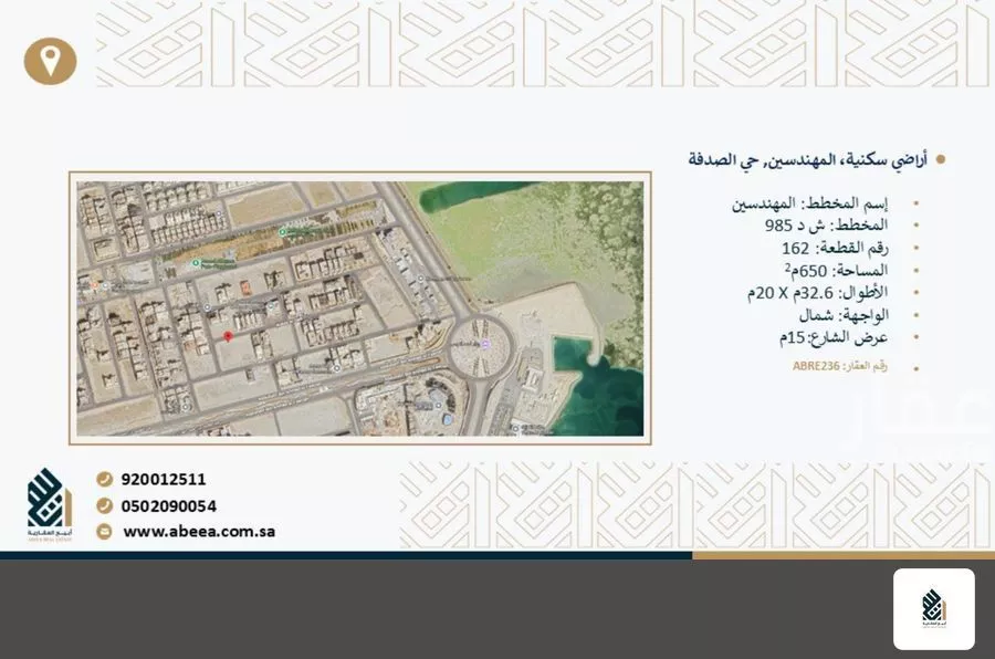 عرض على Aqarشركة أبيع العقارية رقم العقار: ABRE-236 أرض سكنية للبيع الخبر - حي الصدفة - مخطط المهندسين - بحر الراكة *تفاصيل العرض* - أرض سكنية - المساحة : 650م - الواجهه : شمالية - عرض الشارع 15م - الاطوال 20×32 ...