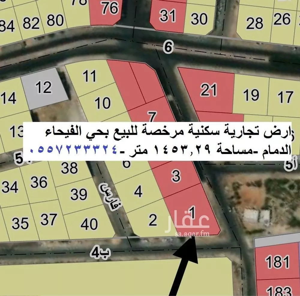 عرض على Aqarارض تجارية للبيع بحي الفيحاء الدمام •قطعة رقم1 - مخطط 698/1 موقع ممتاز قريب الخدمات مساحة 1453.29 متر ركنية 20شمال-20شرق تصريح بناء تجاري ثلاث أدوار ونص عليها ترخيص عمارة تجارية(٧ محلات و١٤ شقة ) مطلو...