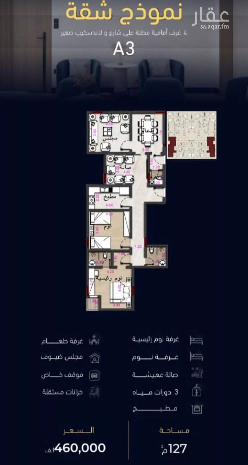 عرض على Aqarشقه اربع غرف حي مشرفه المساحه 127 متر السعر 460 الف مدخلين للشقه مطبخ صاله معيشه ثلاث دورات مياه خزانات مستقله عدادات خاصه موقف خاص كاميرات مراقبه غاز مركزي مصعد بانورامى مدخل فندقي تصميم مودرن بلكونا...