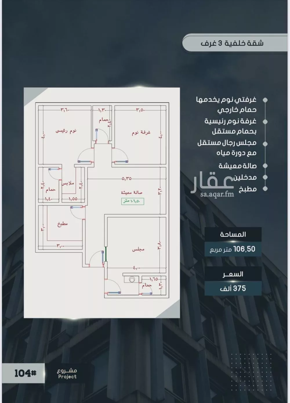 عرض على Aqar*شركاءُ النجاحِ الأَعِزاء* *من ابحر الشماليه،* *حي الصواري* نضعُ بين أيدِيكُم مشروعَنا الجديدْ ونُعلنُ عن بدءِ الحجز...للكاش فقط *جوهرة الصواري104* *تفاصيل الشقه والأسعار :* - *شقة 3 غرف ، 106، السعر ...