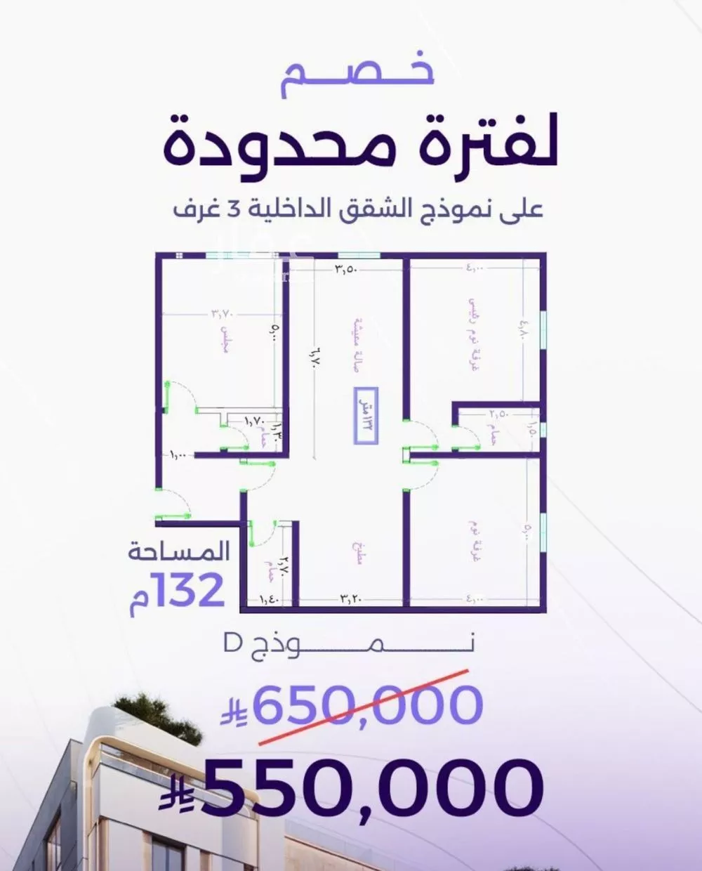عرض على Aqarالسلام عليكم ورحمة الله وبركاته اسعد الله أوقاتكم بالخير والمسرات عملائنا الكرام نطرح لكم مشروعنا المميز في ارقى الاحياء في جده حي الزهراء البيع كاش. ⚪ شقة داخلية شارع 3 غرف نموذج ( D ) مساحتها (132م)...