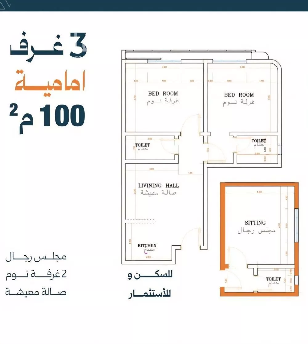 عرض على Aqarشقة ٣غرف مساحة ١٠٠م بسعر ٣٥٠ الف مكونات الشقة:: مجلس رجال ٢غرف نوم صالة معيشة غرفة خادمة مطبخ ٣دورات مياة مستودع موقف خاص عداد مستقل خزان علوي وسفلي مستقل