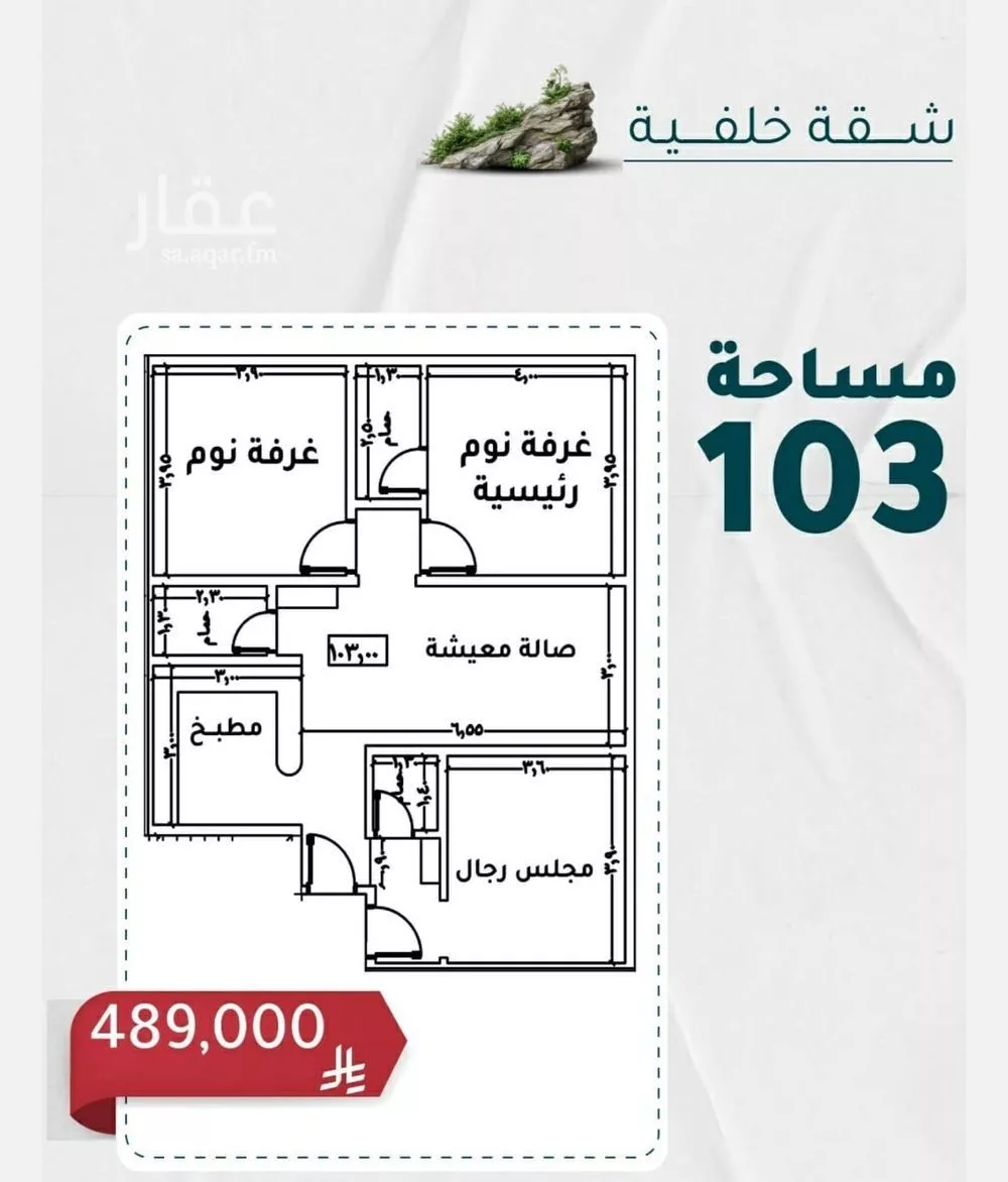 عرض على Aqarتملك واستثمر شقه ثلاث غرف جده حي الروضه بمساحه 103م بسعر 489الف تفاصيل الشقه مدخلين مجلس رجال صاله معيشه مطبخ غرفه نوم رئيسيه غرفه نوم 3/دورات مياه