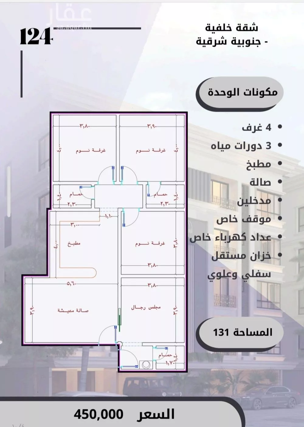 عرض على Aqar-- - شقق حي الصواري ترحب بكم وتقدم لكم أحدث مشاريعها السكنية العصرية بروح الفخامة وجودة التنفيذ حيث الراحة تلتقي بالأناقة، وحيث تسكن الجودة قلب كل تفصيلة... نقدم لكم بكل فخر مشروعنا الجديد رقم ( 124) ...