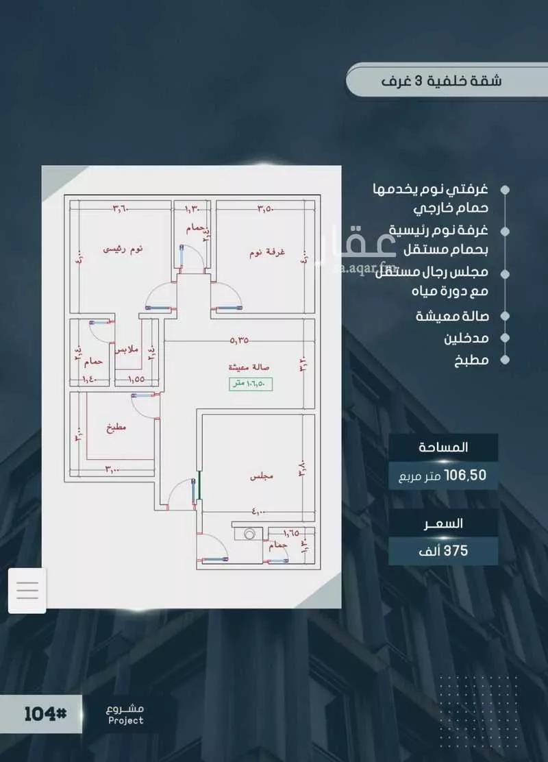 عرض على Aqar*شركاءُ النجاحِ الأَعِزاء* *من ابحر الشماليه،* *حي الصواري* نضعُ بين أيدِيكُم مشروعَنا الجديدْ ونُعلنُ عن بدءِ الحجز...للكاش فقط *جوهرة الصواري104* *تفاصيل الشقق والأسعار :* - - *شقة 3 غرف ، 106، الس...