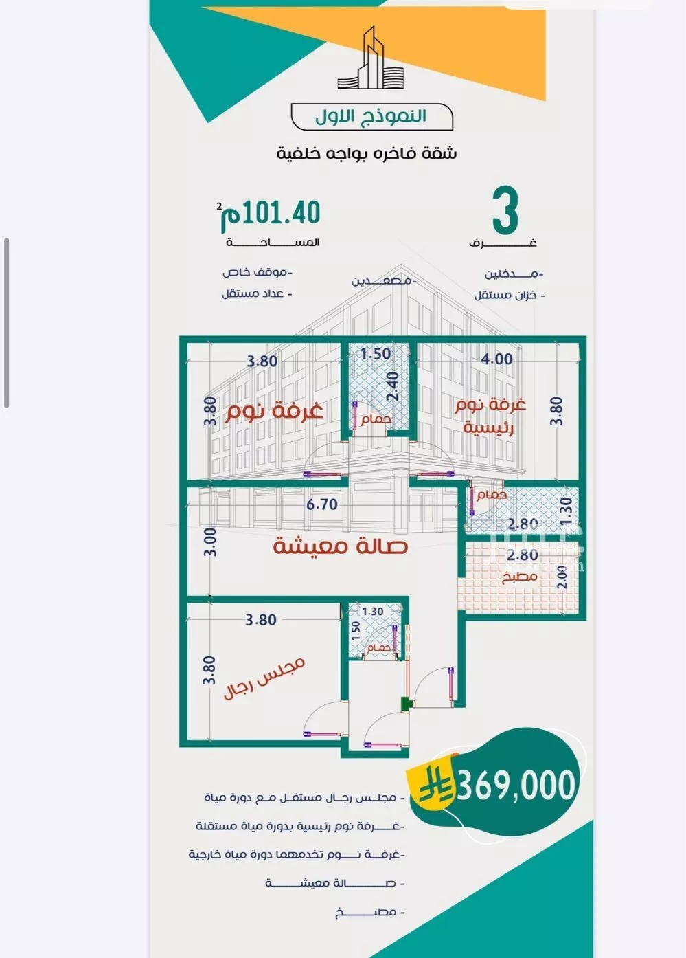 عرض على Aqar3 غرف خلفية 101م وبسعر منافس 369 ألف ريال فقط