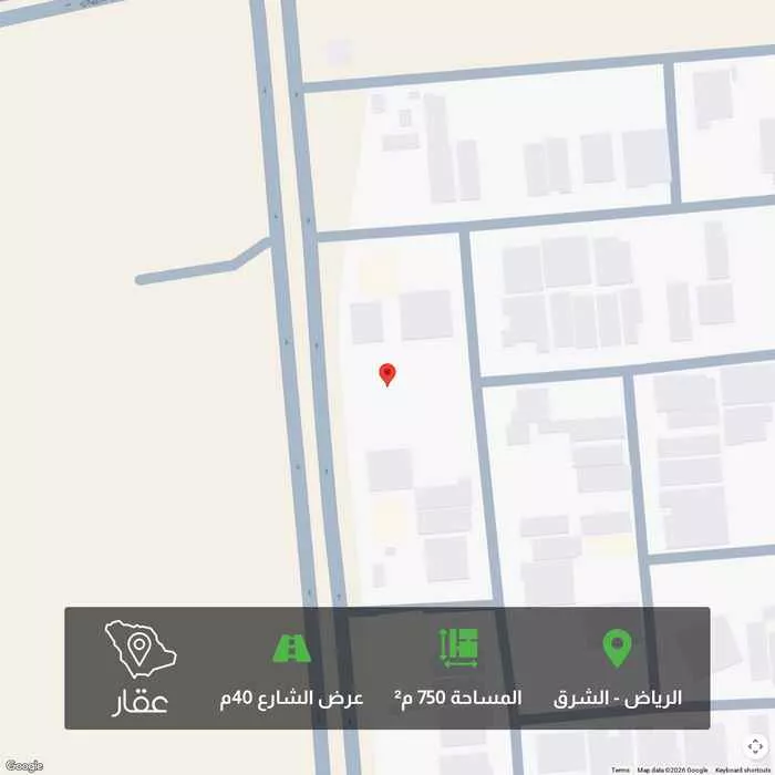 750 م² أرض في الشرق، الرياض معروضة بسعر ٣٬٧٥٠٬٠٠٠ ريال، أعلى بنسبة 526% من متوسط سعر الحي البالغ ٥٩٨٬٩٥٠ ريال. بناءً على 648 عقار مشابه.