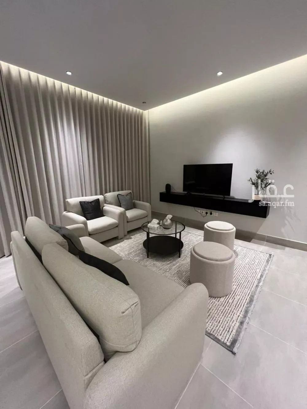رقم التواصل وتساب 0591723982 شقه للبيع حي الملقا مشروع الماجديه 121 المساحه 127 تتكون من ٣ غرف نوم واحدة منهم ماستر مطبخ مخزن ٣ دورات مياه مجلس مفتوح على الصالة تلفزيون - كنب - طاولة طعام - ستائ...