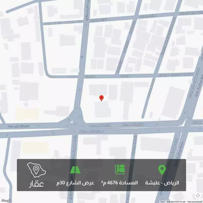 عرض على Aqarارض سكنية تجارية (( السعر قابل للتفاوض )) اجمالي المساحة حسب الصك 4676 متر الارض بحي عليشة تقع على 3 شوارع شارع 30 جنوبي وشارع 20 على الشمال والغرب اطوالها حسب الصك : جنوب شارع 30 بطول 57 شمال شارع 20...