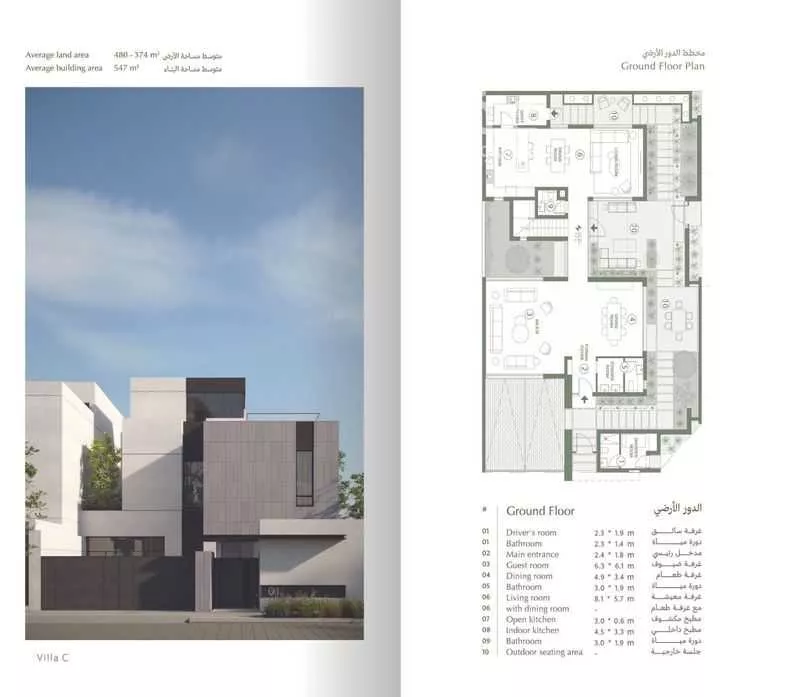 عرض على Aqarفيلا 337 مستقلة للإيجار | تصميم Type C بمساحات واسعة فيلا 337 مستقلة وعصرية، تقع على أرض بمساحة 375 م²، وبمساحة بناء تقارب 547 م². تتميز الفيلا بتصميم واسع موزع على عدة مستويات، وتضم 4 غرف نوم بالإضاف...